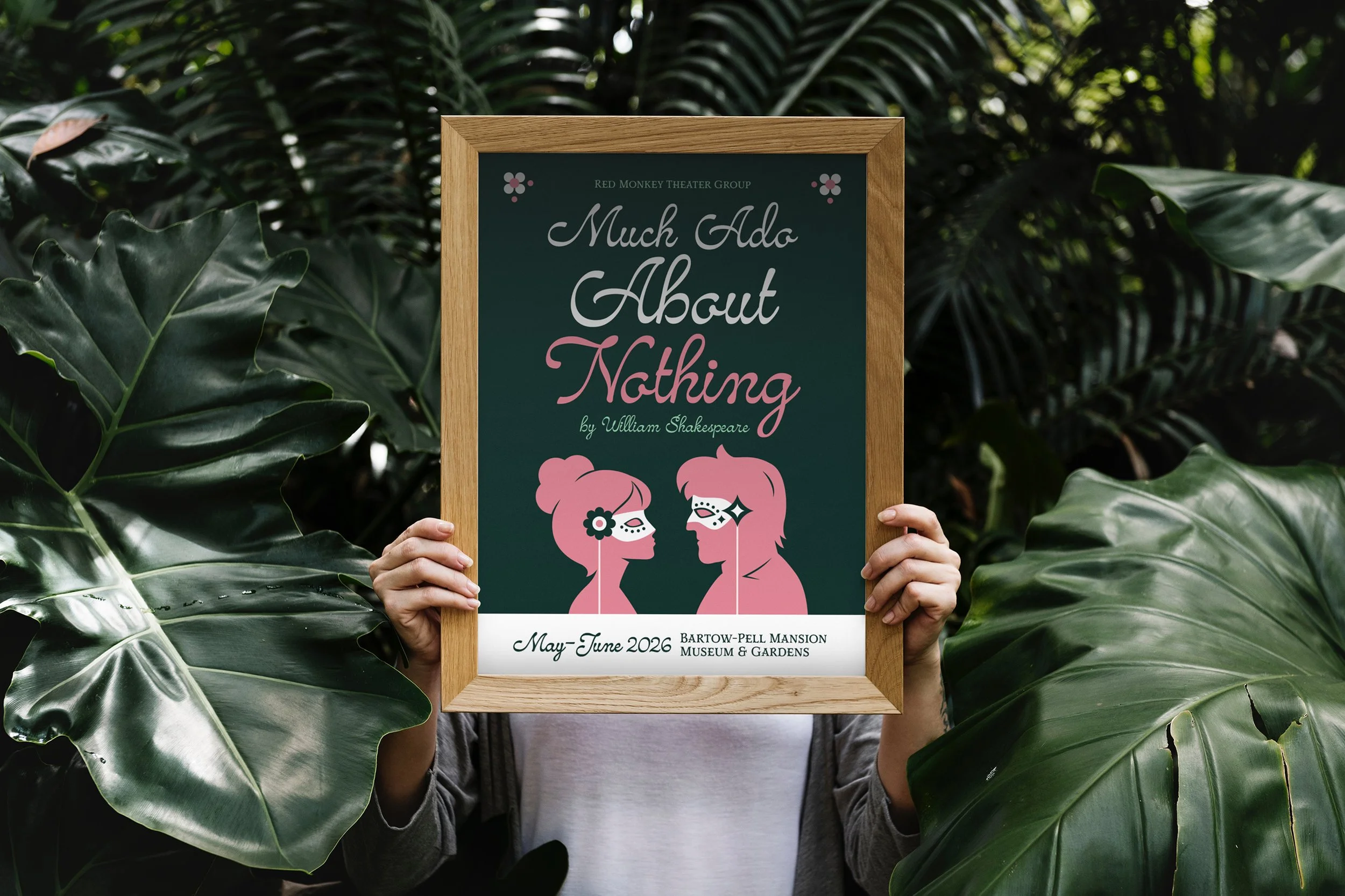 For this summer production, I created a romantic visual identity centered on softness and subtle tension. The flowing script font conveys warmth and intimacy, while pink silhouettes of the masked leading couple capture both love and disguise, two central themes of the play.